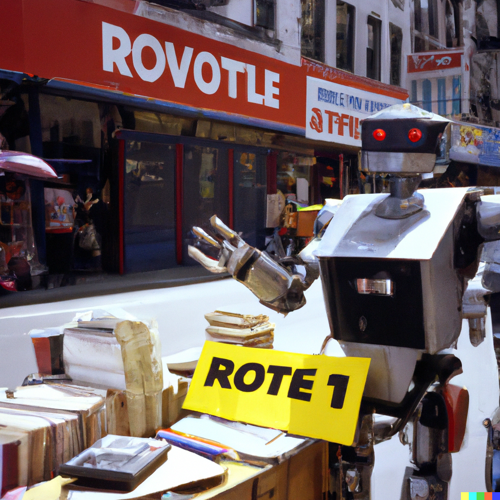 It took me less time to create this visual for the metaphor than it did to create the metaphor. DALL-E came up with the name "ROTE 1" on its own, which is more clever than I'd like. ("We Sell Your Memories, Wholesale" - DALL-E 2; Sam Marshall)