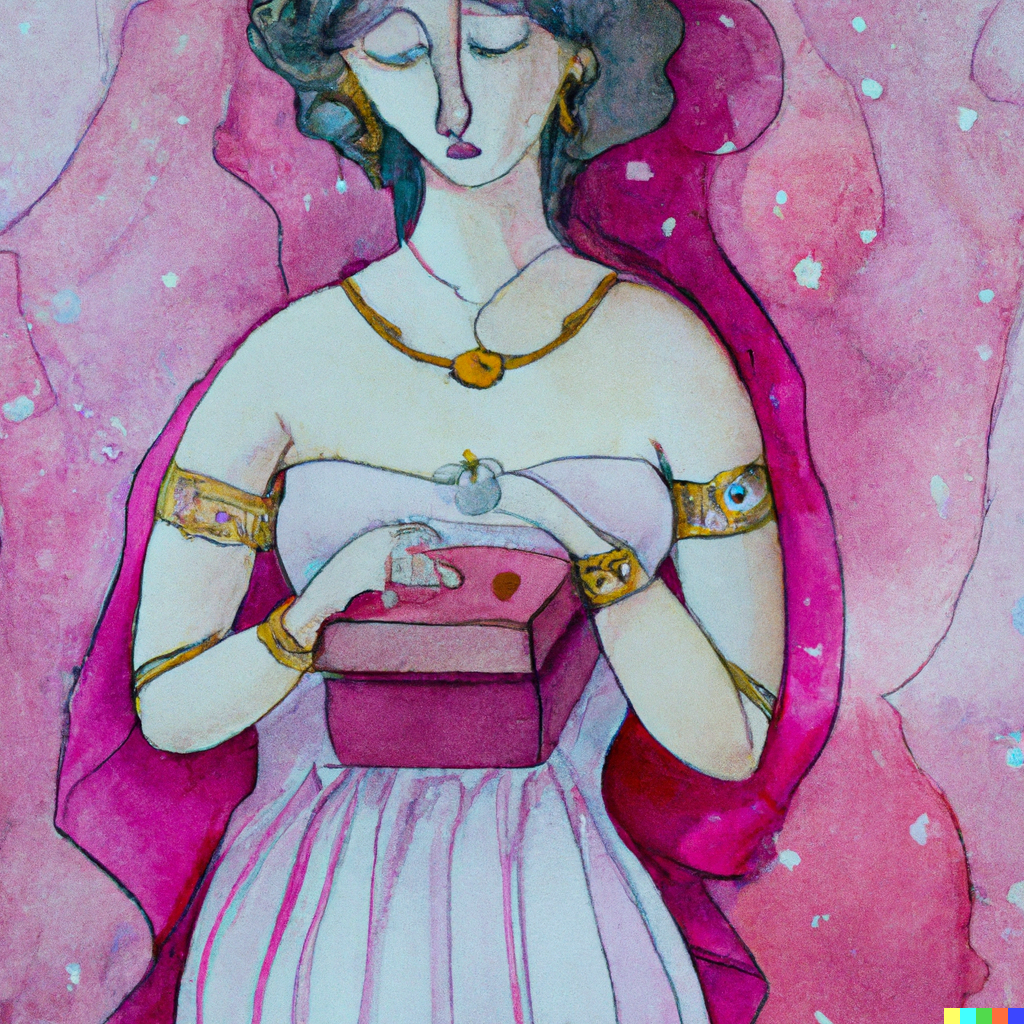 But Epimetheus's fatal mistake was that he also did what we all do the first time we meet a beautiful woman: he ignored what accessories she had with her. Just before she was to make his acquaintance, Zeus slipped Pandora a betrothal gift, of sorts. A beautiful, adorned capsule; never to be opened. Epimetheus could have known this, if he asked Pandora what she had in her hand. Epimetheus could have known that something was probably up if he ever wondered what was on Pandora's mind. Epimetheus did neither of these things, not necessarily because he was a Titan or necessarily because he was a man, but probably because of a little of both. And so, Pandora grows bored and stares.