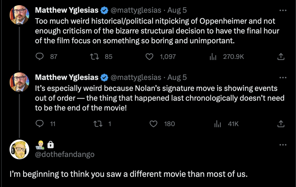The final message of Oppenheimer to the audience can evoke Fear, but I instead choose to leave you with this, which I think better encapsulates what the ending means to me. We have to hope that the mechanisms that allow for new systems of change, that fire that Prometheus gave us as humans, will find that universe that Oppenheimer saw so vividly and sought to create: without war, without suffering, and without Fear.